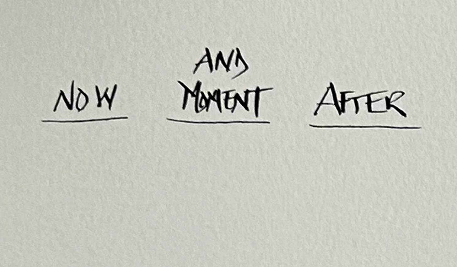 “Breakfast” AND Moment. We can illustrate a river of time by drawing three sequential lines and labeling them NOW, AND MOMENT, and AFTER.